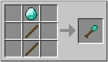 Для создания алмазной лопаты вам понадобится два алмаза и две палки