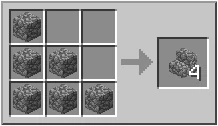 Булыжниковые ступени создаются из шести блоков булыжника. За один процесс вы получите 4 штук.