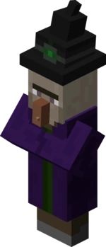 Ведьма враждебна к игроку, если она его встретит то начнёт преследовать, но перед этим она может выпить зелье регенирации. После этого она бросит нас вас зелье слабости (1 минута) и отравления (30 секунд), после этого начнёт бросать на вас зелья урона, когда эффект отравления закончится, она кинет на вас новое зелье отравления. Если вы ей нанесёте урон, она начнёт пить зелье лечения, если находится на воде, то она выпьет зелье подводного дыхания, если на огне или лаве, то зелье урона. Примечание: когда она пьёт зелье, у неё поднимается босс.
