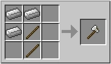 Для создания топора вам понадобится три железных слитка и две палки. Хотя не важно в какую сторону повёрнуты слитки железа и палки лучше в правую сторону делать так как мышка ближе к окну крафта.