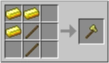 Для создания золотого топора вам понадобится три слитка золота и две палки.